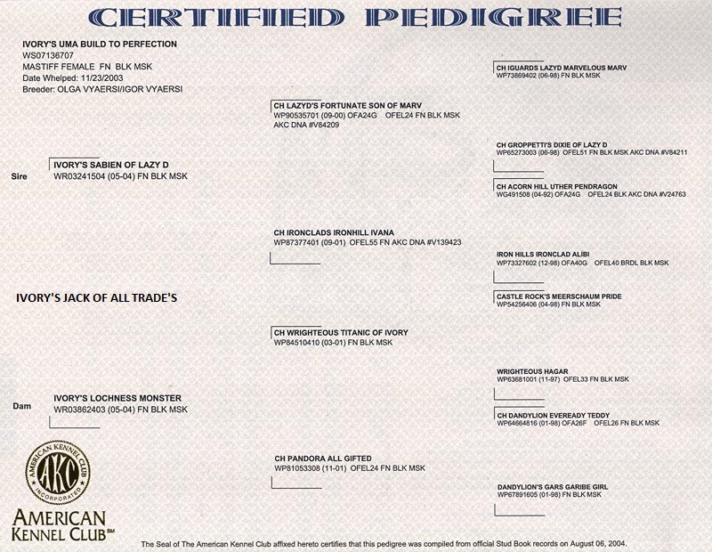 Nadia's pedigree